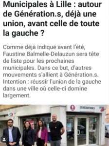 par Faustine Balmelle-DelauzunNous l’avons annoncé : Génération.s Lille choisit de s’allier à la liste « Lille Demain » portée… Lire la suite : Le choix de l’union - L’union de la Gauche: on continue avec Lille Debout !